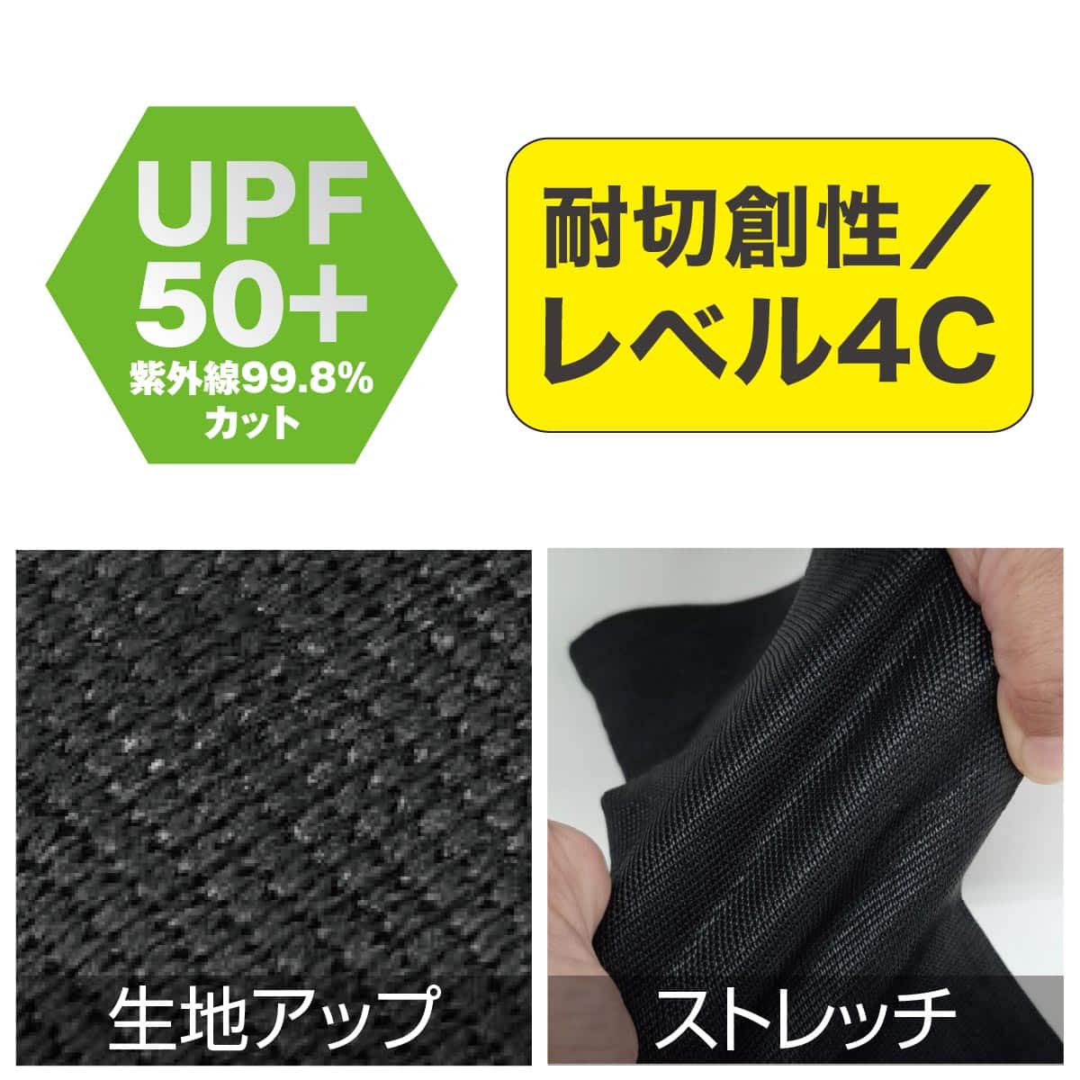「切創耐性レベル4C」×「接触冷感」。腕を守り、涼しさを保つ。