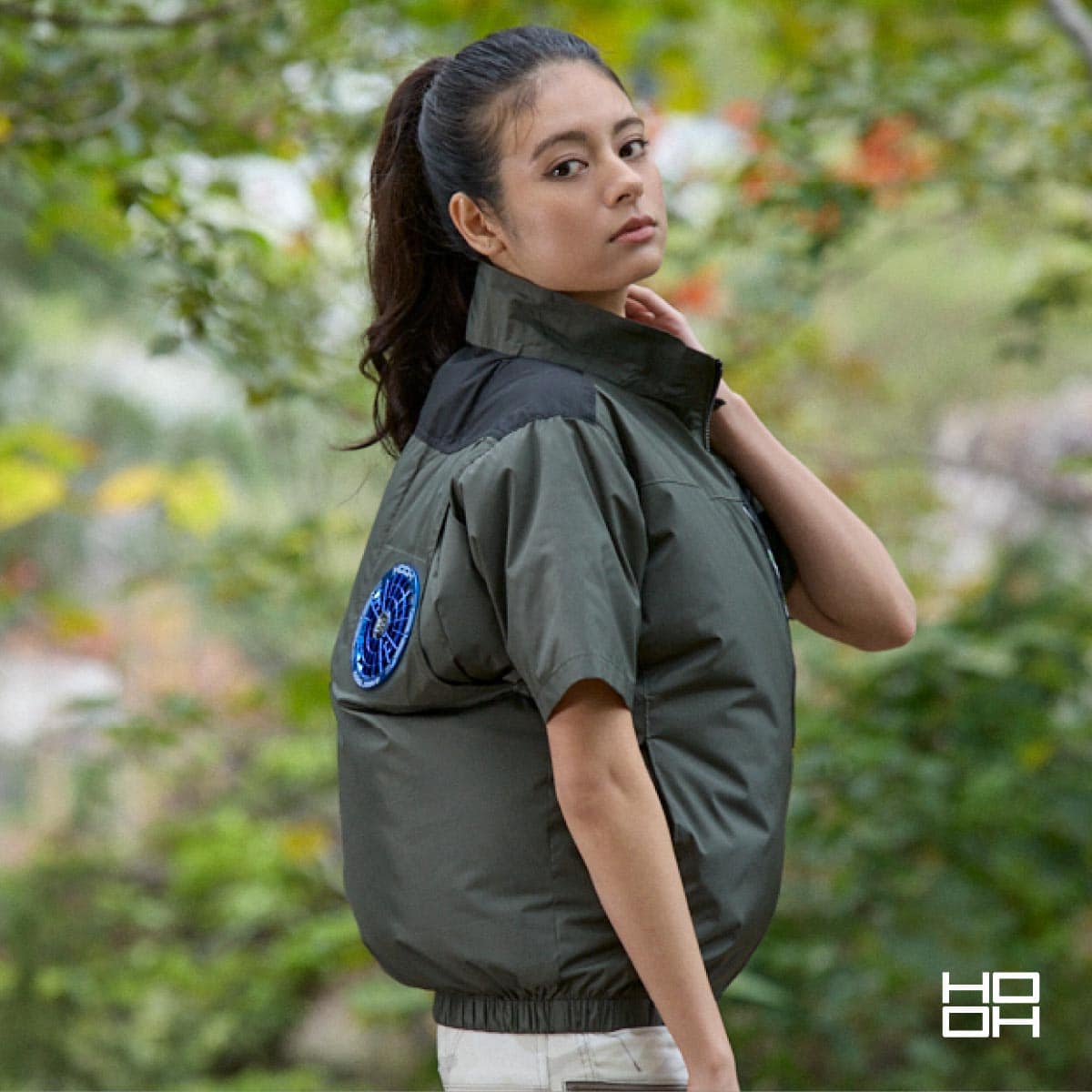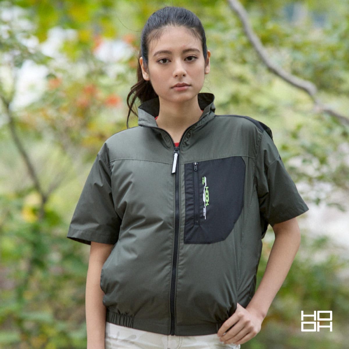 村上被服「快適ウェア」の最新技術を、最もアクティブに動ける半袖スタイルに凝縮。フードを排除した立ち襟デザインは、視界を遮らず、首元の熱気を効率よく逃がす「実戦重視」の選択です。