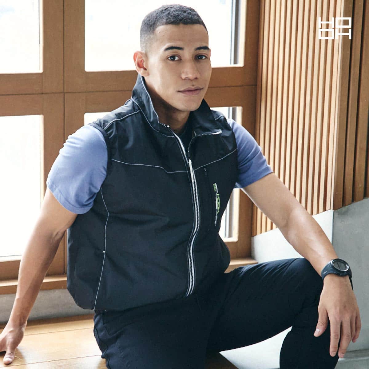 裏チタンの遮熱性と保冷剤ポケットを搭載した最強スペックを、最も軽快なベストスタイルで。腕の動きを一切妨げず、首回りもスッキリとした、作業性を極めた一着です。