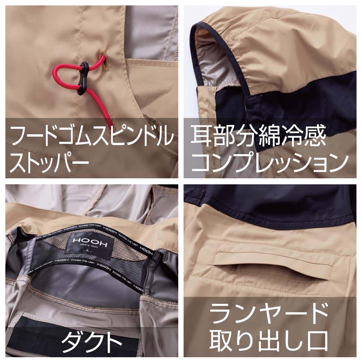 フード取り外し可能:ヘルメット着用時やスタイルに合わせて自由に着脱可能。
