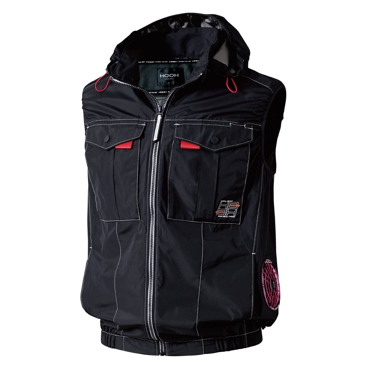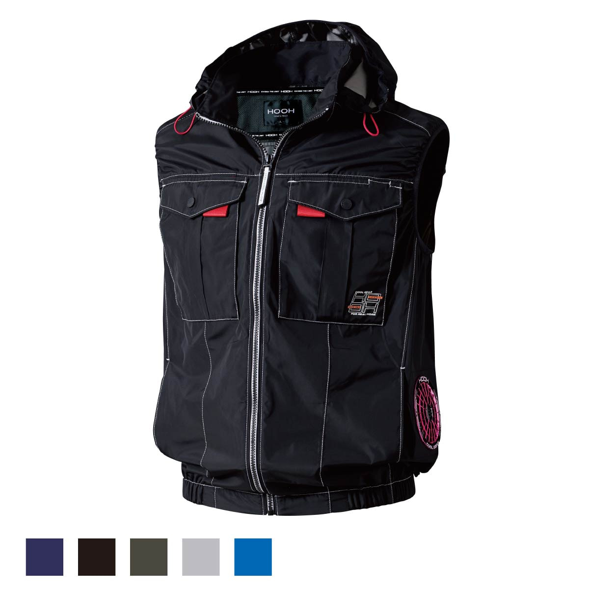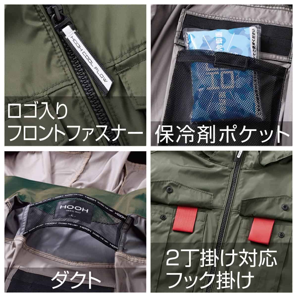 プロ仕様の快適機能 消臭テープ内蔵でニオイをカット。フードは着脱可能で、ヘルメット着用時などシーンに合わせた使い分けが可能です。