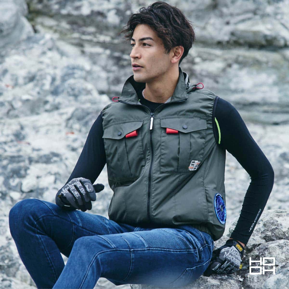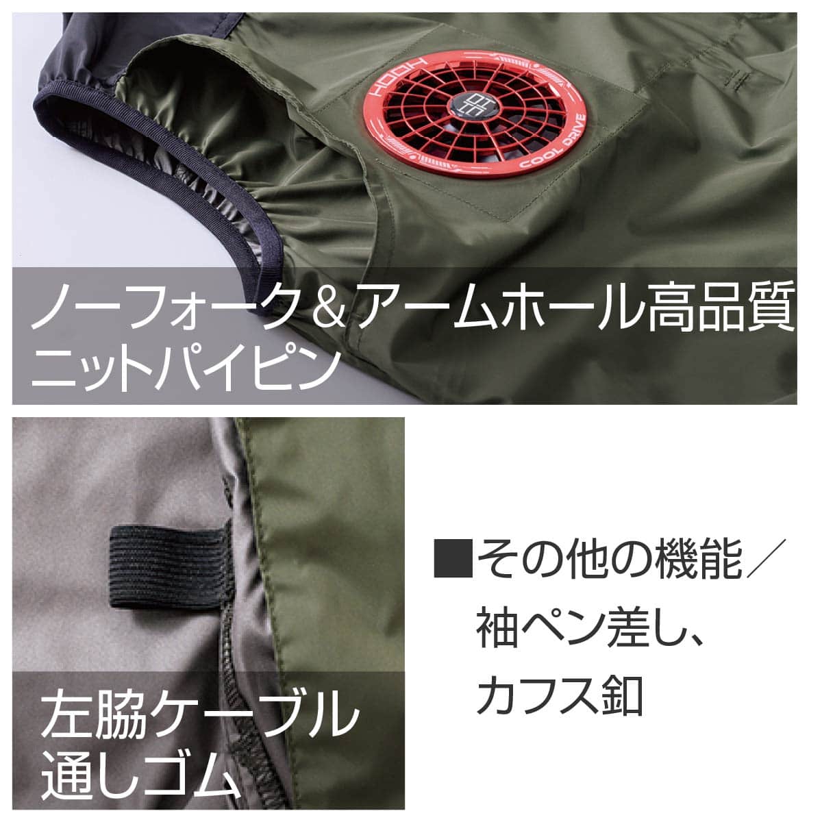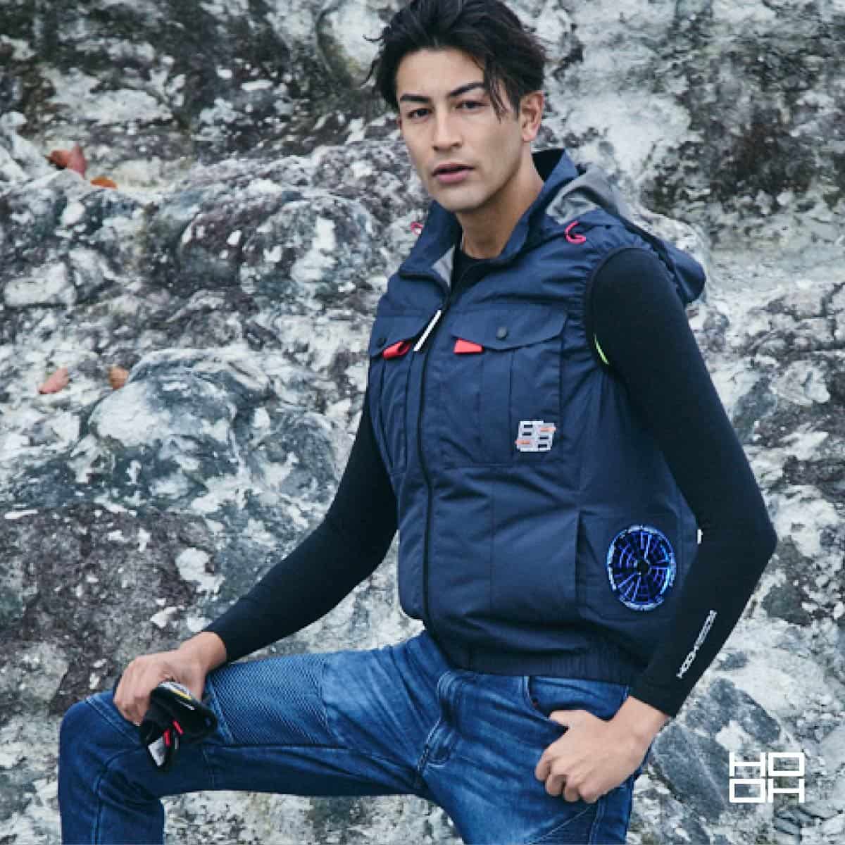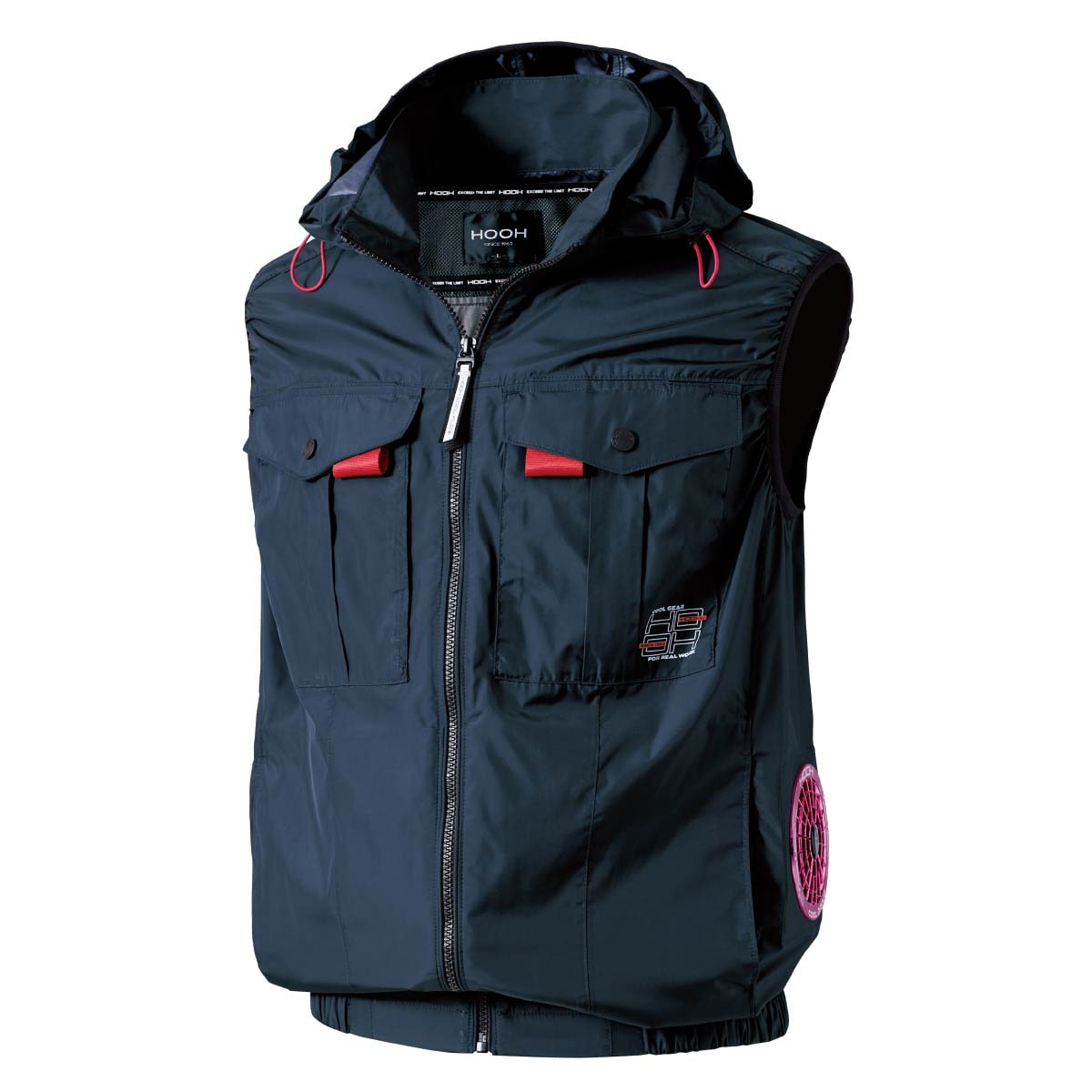プロ仕様の快適機能 消臭テープ内蔵でニオイをカット。フードは着脱可能で、ヘルメット着用時などシーンに合わせた使い分けが可能です。