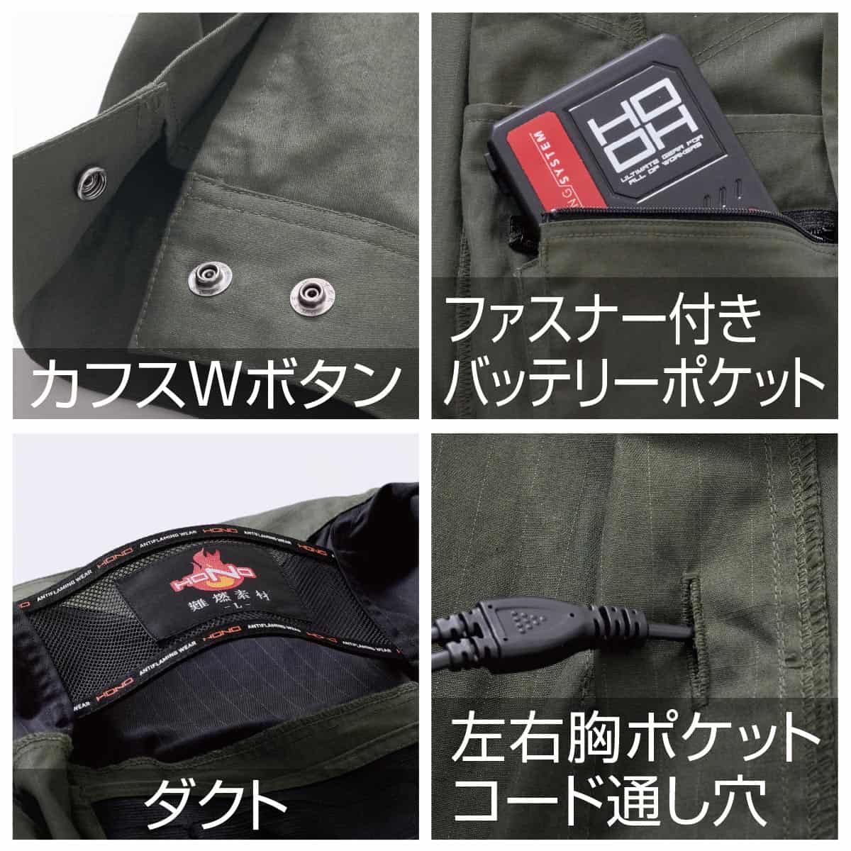 耐炎・耐熱性能を備えた安全設計モデル。火気を扱う現場でも安心して着用できる仕様です。
